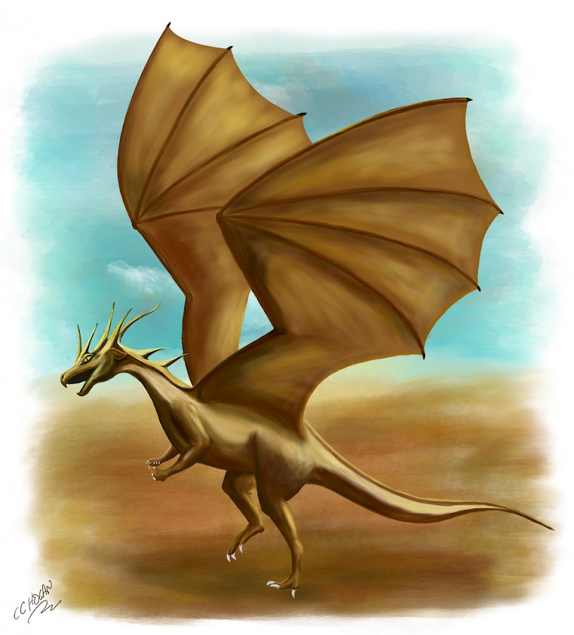 Like many dragons, they are fond of water and will play for hours in the surf. All dragons can swim, but the desert dragons are probably more accomplished swimmers than others, possibly because of their slim shape.